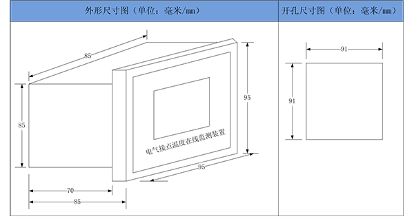 1、無線溫度接收模塊外形及開孔尺寸圖