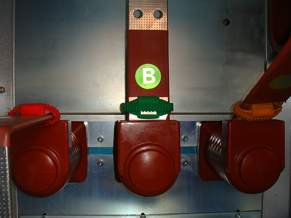如圖所示,溫度發(fā)射模塊安裝在需要監(jiān)測溫度的部位上(如靜觸頭)。A、B、C三相每相安裝一個溫度發(fā)射模塊。